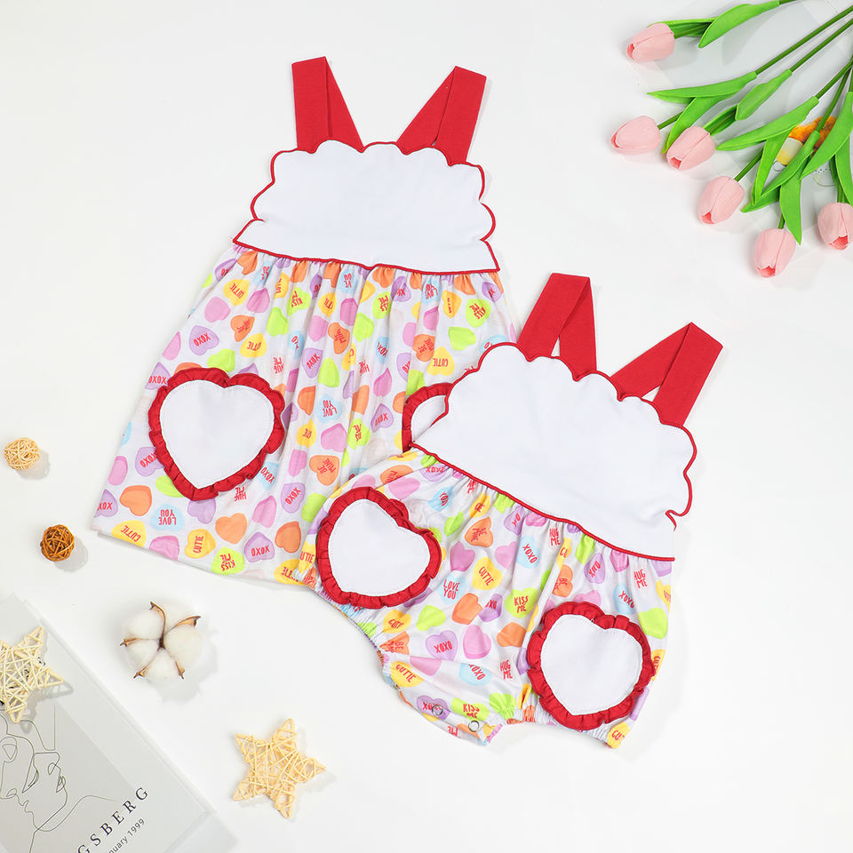 Wholesale Valentine's Day Kids Clothes Cute Heart Appliqued Shirt Matching Red Dots Ruffle Pants Children's Girls Clothing Sets