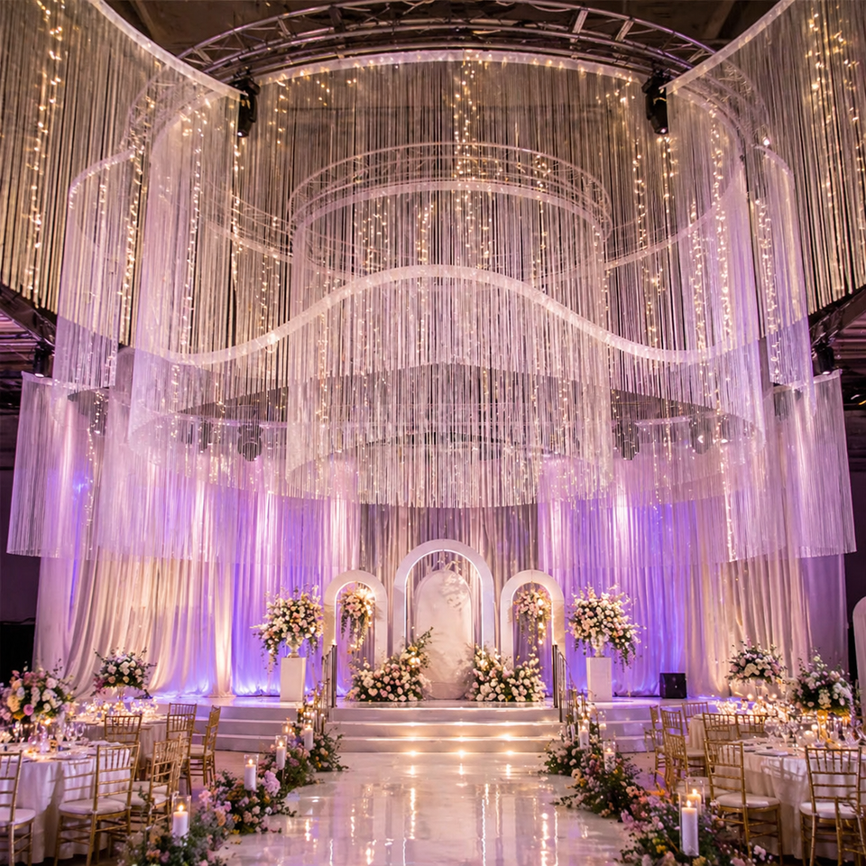 Keywords:string fringe tassel curtain For wedding hotel hanging ceiling