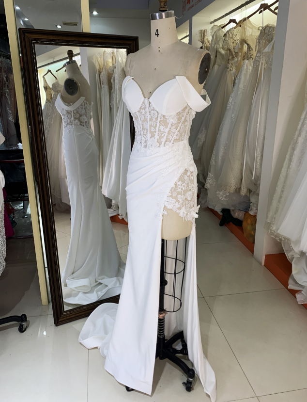 Wholesale Vintage Elegant White Floral Lace Satin Dress for Weddings Floor-Length with Chapel Train and Floral Decorations