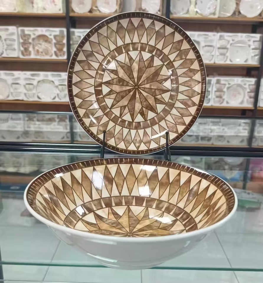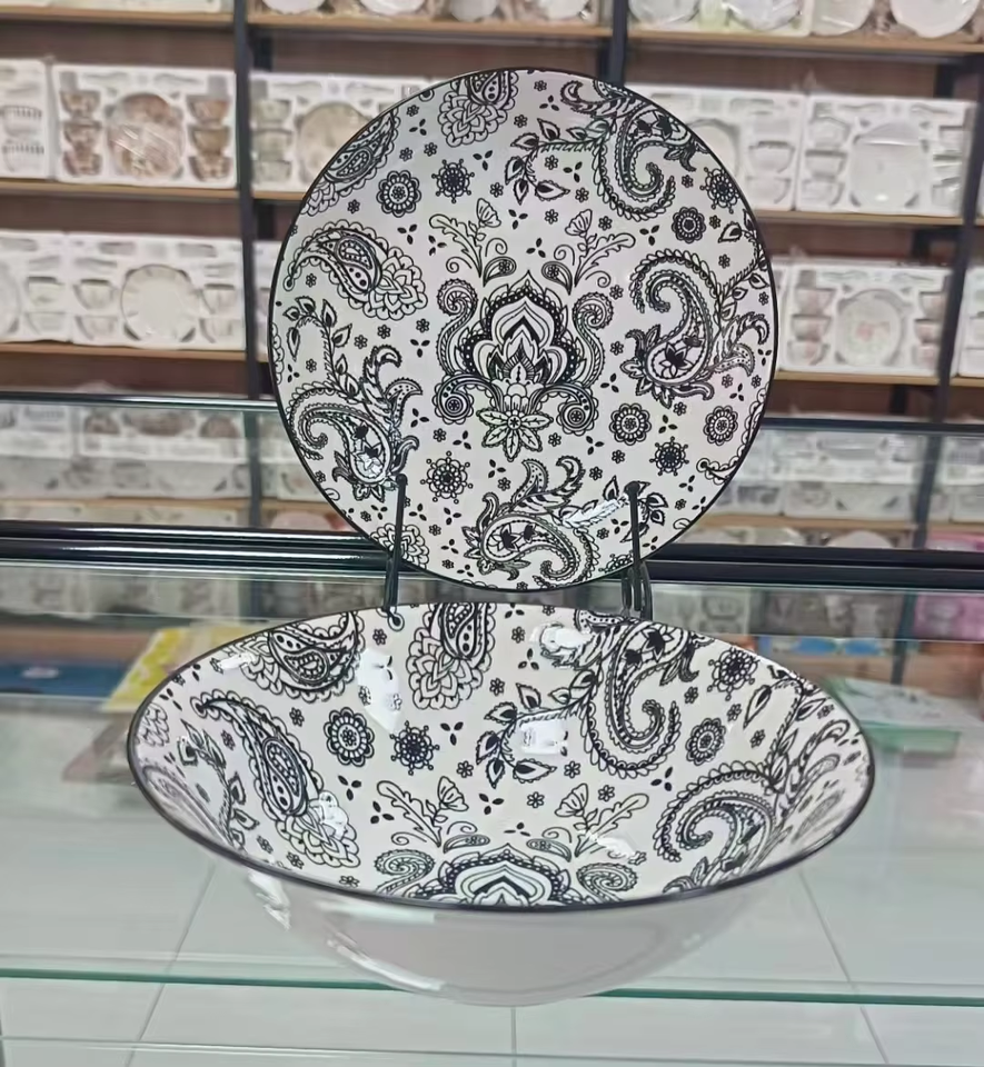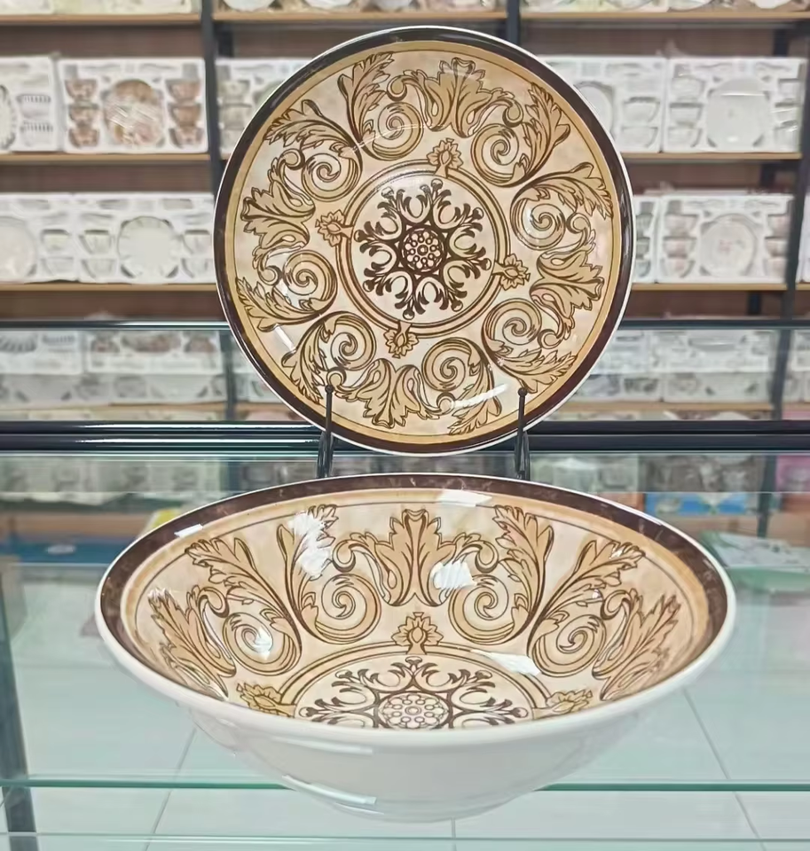 Commercio all'ingrosso Vintage rotondo in ceramica stoviglie stampate tazze piattini nuovo servizio per uso domestico cucina festa