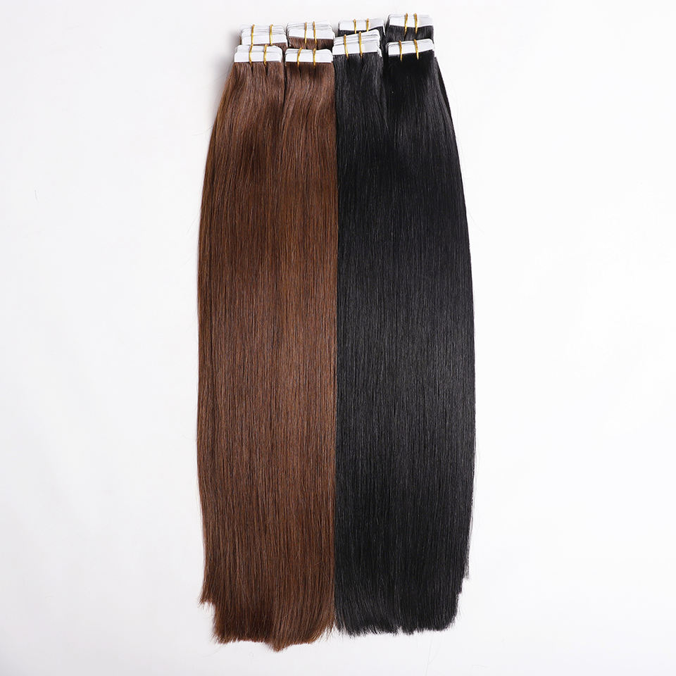 Commercio all'ingrosso vergine cuticola intatta tessuto di pelle capelli extension naturale doppio disegnato nastro grezzo in veri capelli umani brasiliani marrone scuro