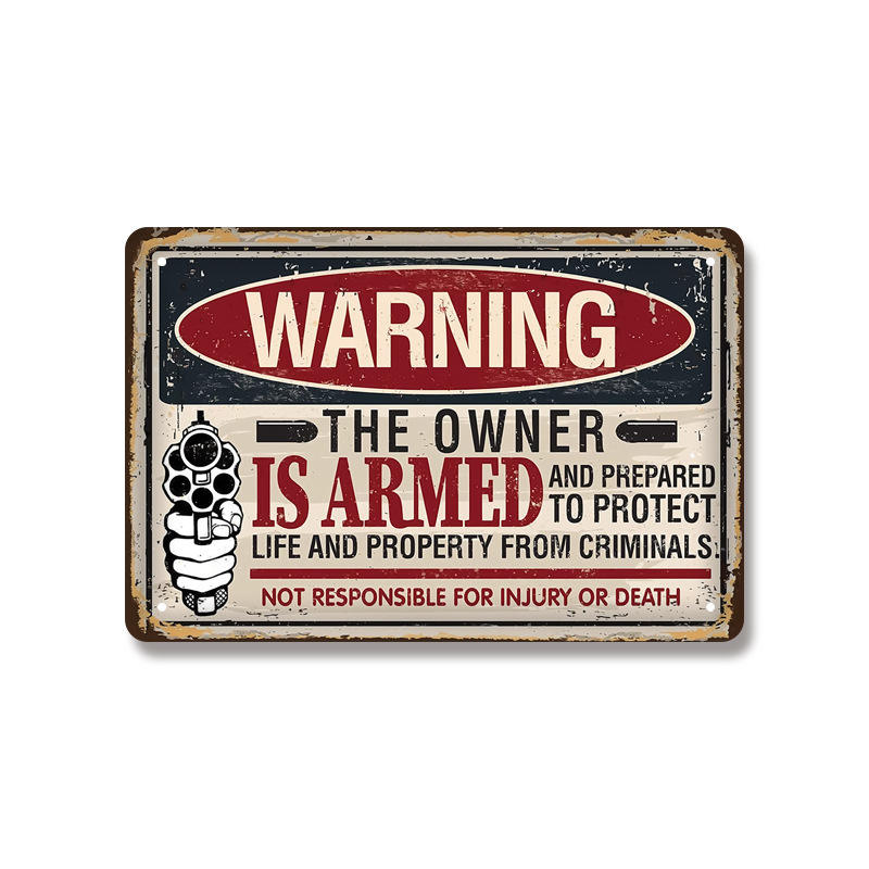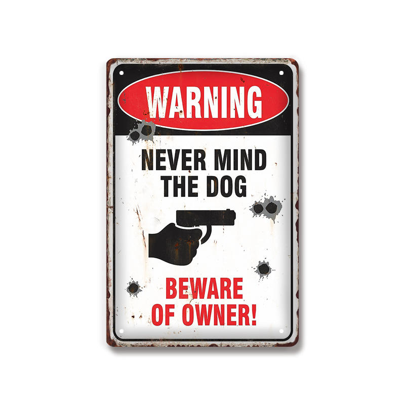 Wholesale Warning Never Mind the Dog Beware of Owner Guns Sign Art Decor Tin Safety Signs Vintage Metal Tin Sign Wall Tinplate