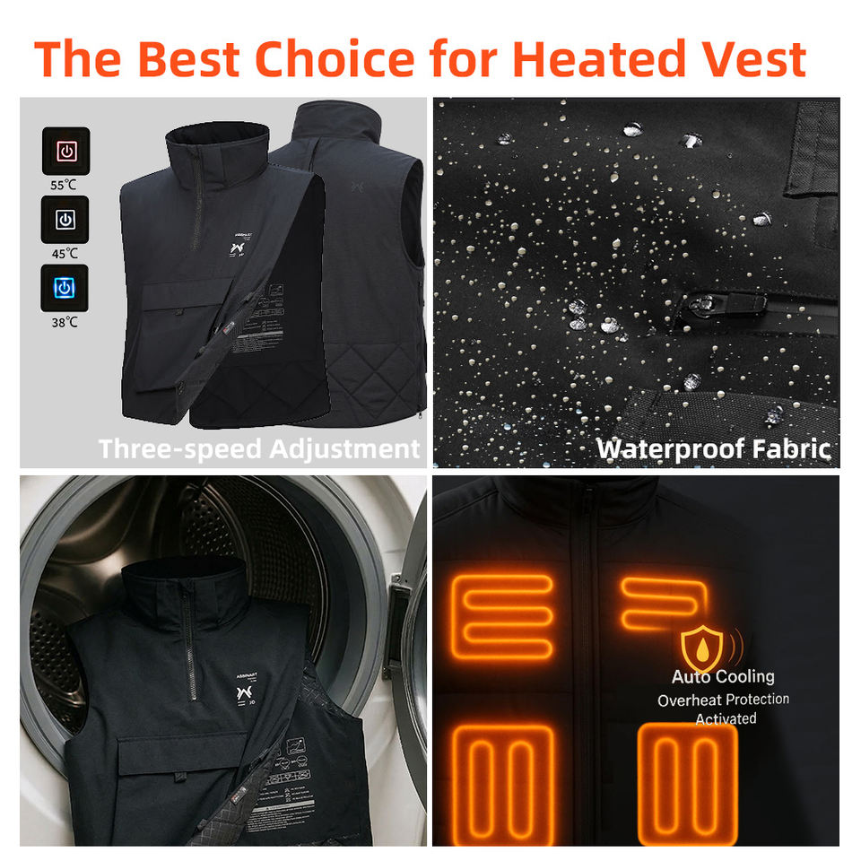 Gilet Riscaldante Impermeabile 450g Ultra-leggero per Esterni, Tre-in-uno, Lavabile, con Riscaldamento al Grafene, Adatto per 45-120kg