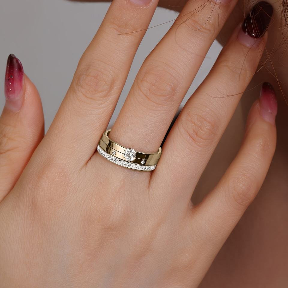 Wholesale Wedding Fashion Jewelry 18K Gold Plated Stainless Steel Three Rings Sets Inlaid Diamond Zircon Ring Sets for Women