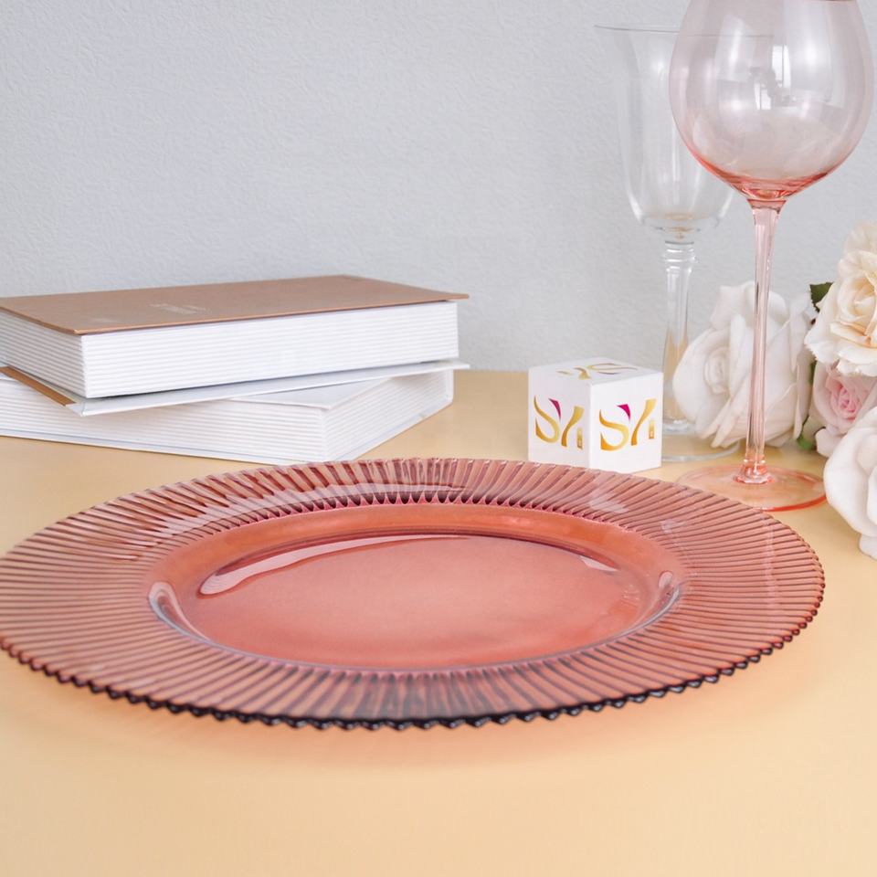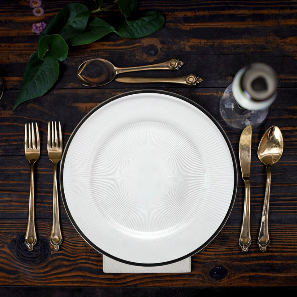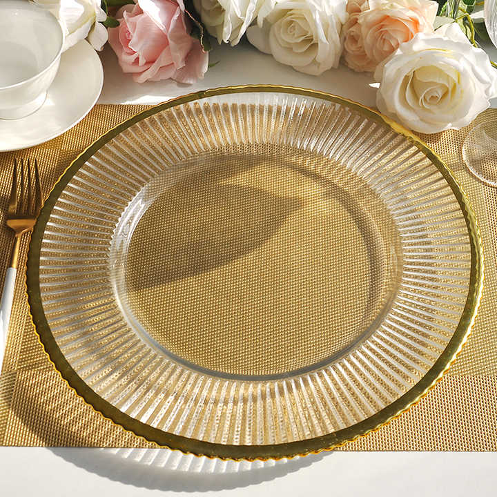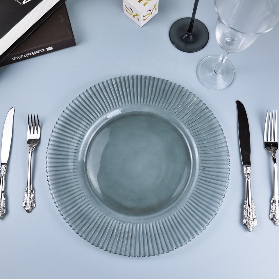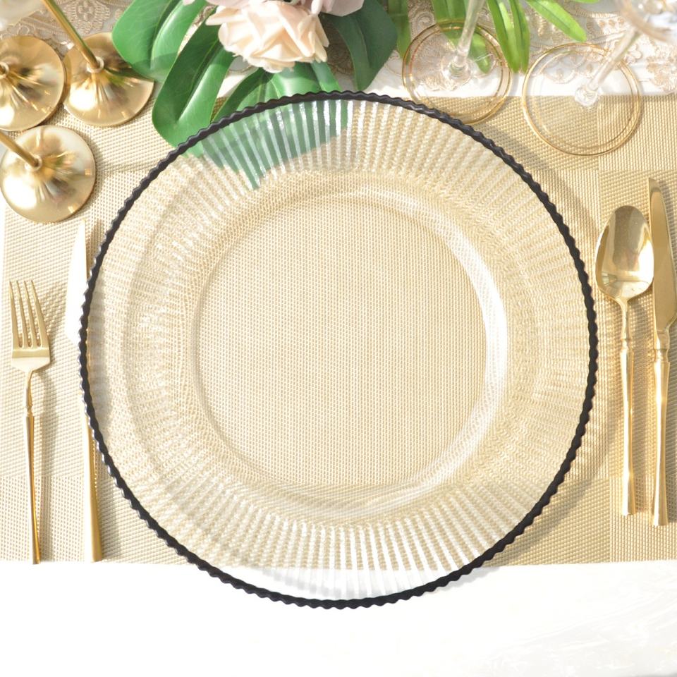 All'ingrosso Wedding Round UnderPlate vetro trasparente caricabatterie piatti con bordo nero