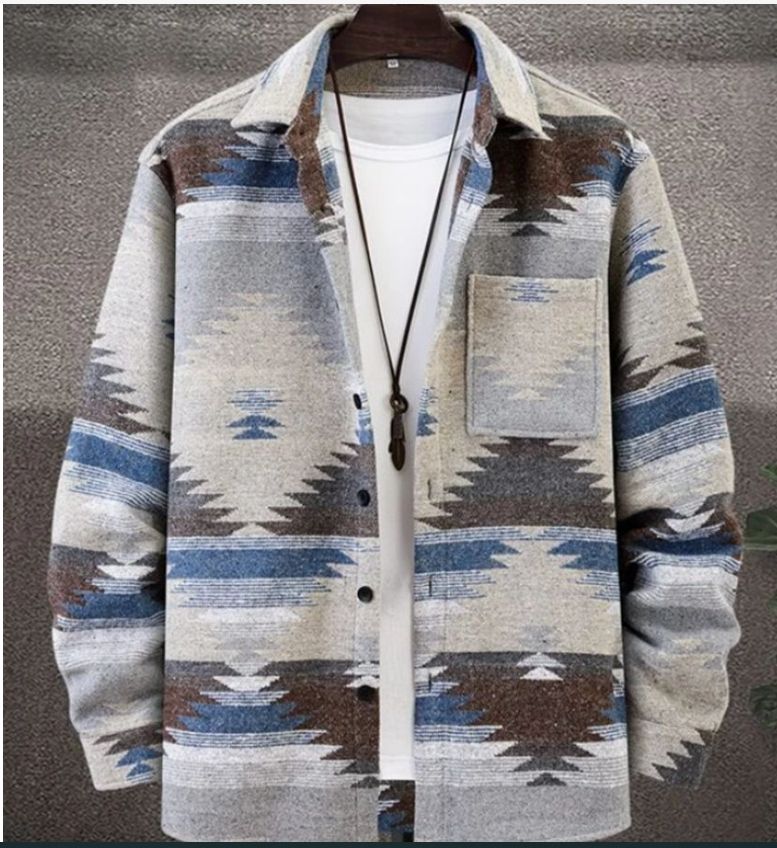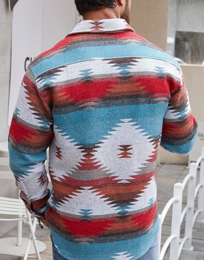 Wholesale Western Loose Long Sleeve Fall Winter Woolen Shirt Shacket Aztec Navajo Print Men's Jackets