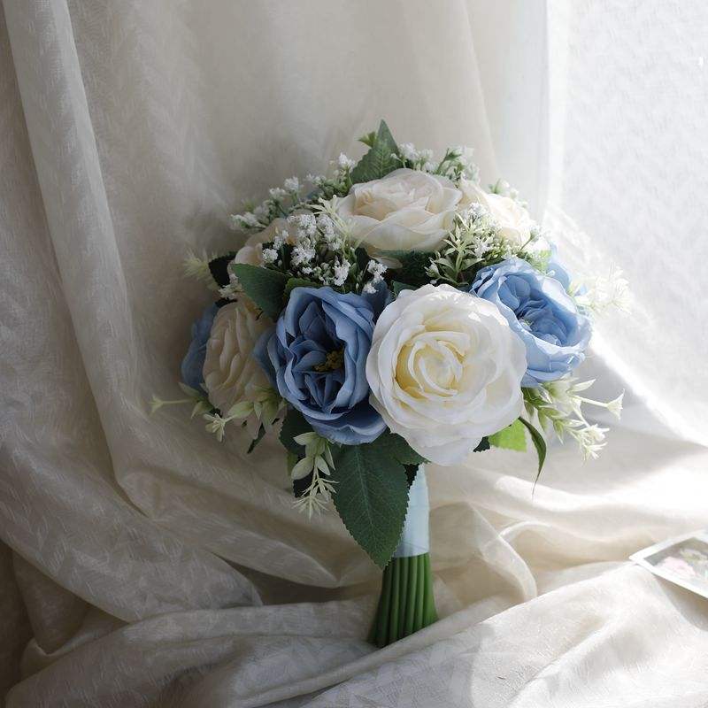 Wholesale White Burgundy Pink Blue Coffee Color Faux Roses Star Bridesmaid Bouquets Wedding Western Korean Hand Bouquet