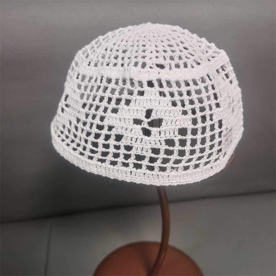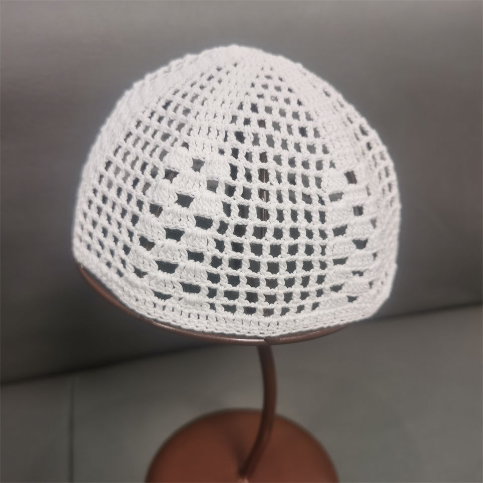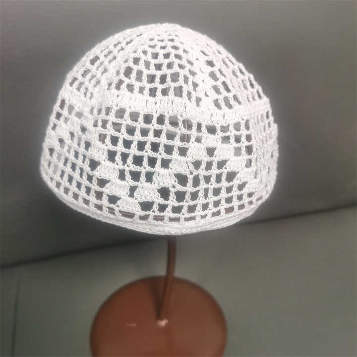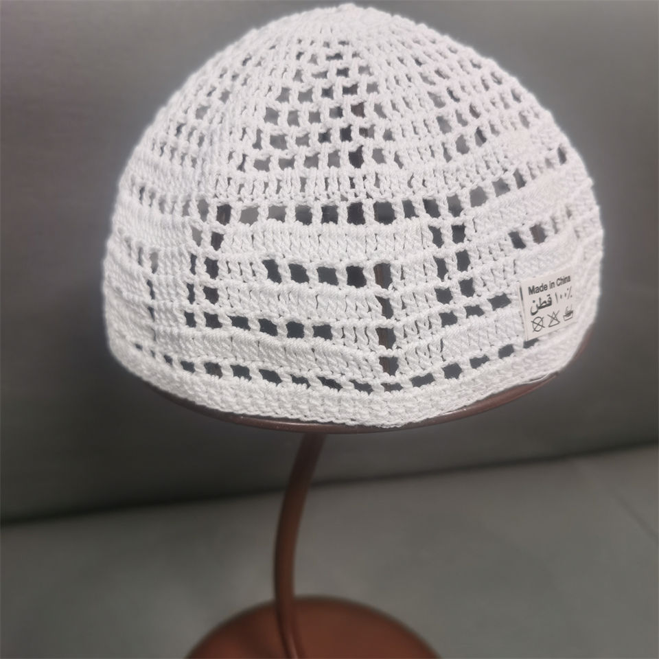 Wholesale White Crochet Islamic Cotton Hat White Muslim Prayer Cap With Embroidery Custom Logo Knitted Kufi Namaz Hijab for Men