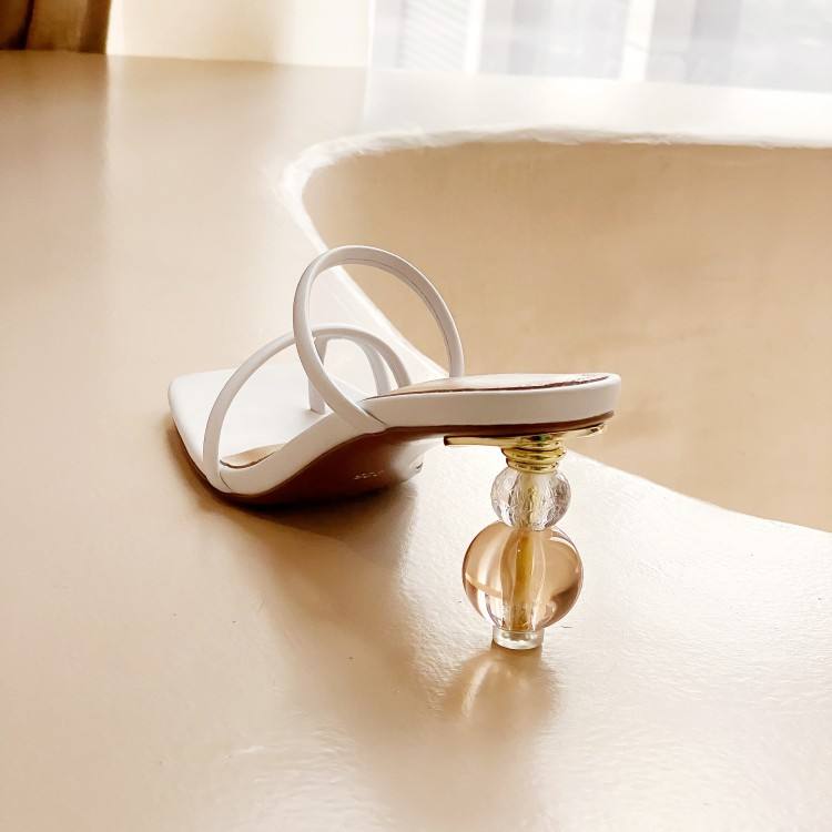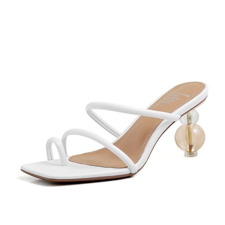 Sandali con Tacco Trasparente in Vera Pelle Bianca, Punta Aperta Quadrata, per Donne e Signore