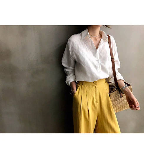 Wholesale White Shirts for Women Manufacturer Different Sizes T-Shirt Damen Linen Women's Blouses & Shirts