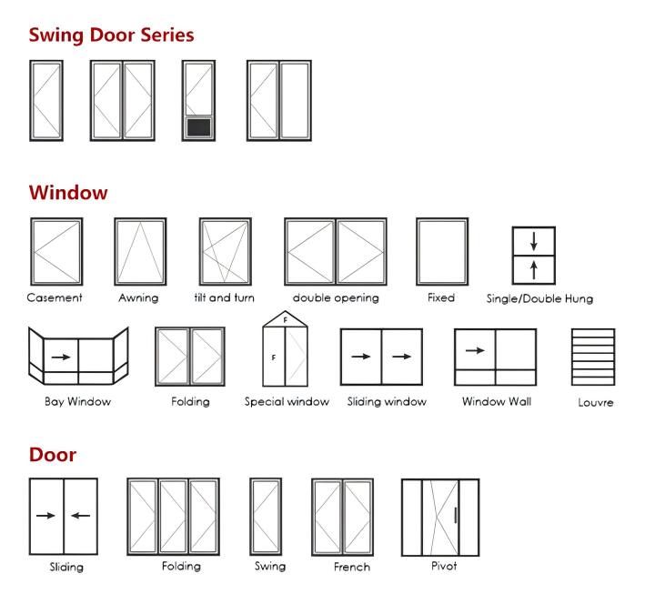 A battente, Scorrevole, A soffietto, A bilico, Fisso, Oscillante