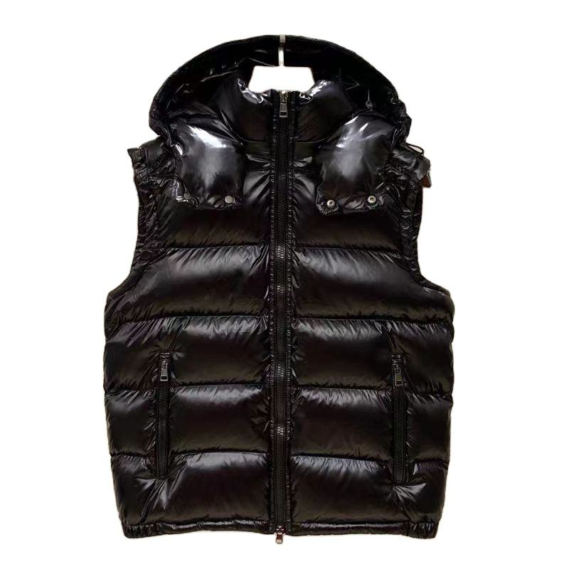 Gilet smanicato imbottito in piuma da uomo, invernale, impermeabile e lucido con logo - all'ingrosso
