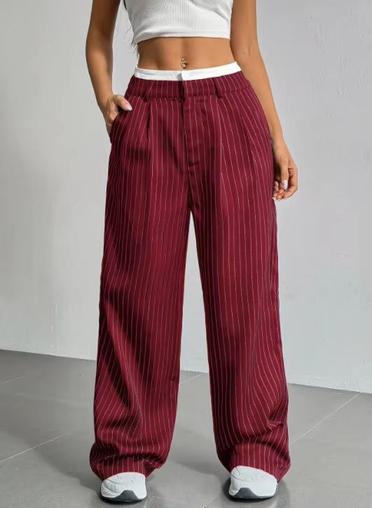 Wholesale Women Casual Straight-Leg Striped Suit Pants Multi-Colors High-Waisted Splicing Trousers Custom Pants
