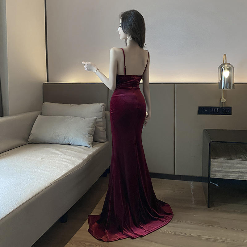 side slit backless red long evening dress Packing way: (1)each in polybag (2)each in a PVC bag with hanger (3)each in a long Opp bag