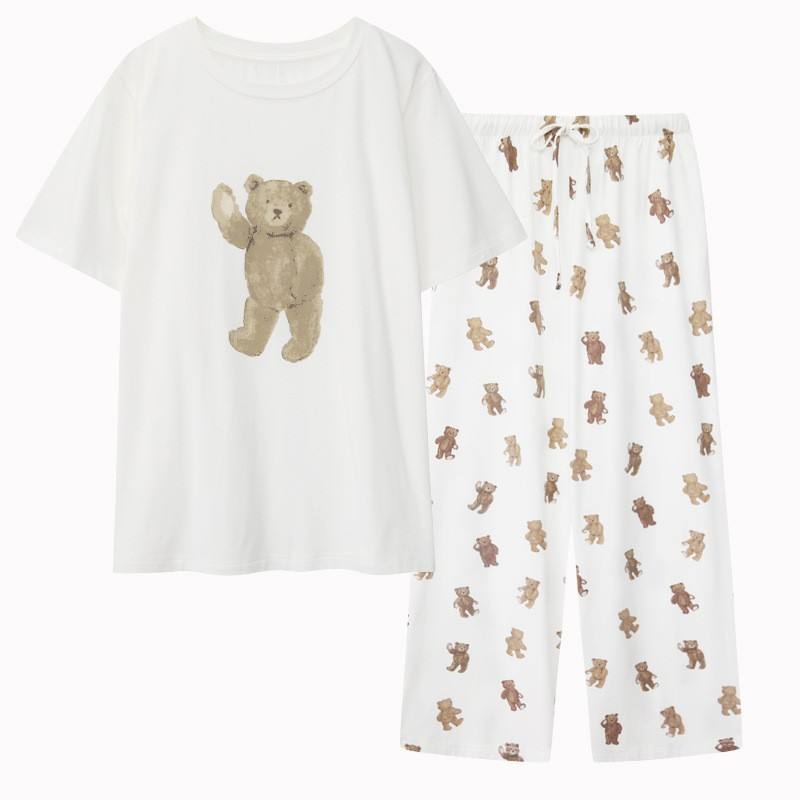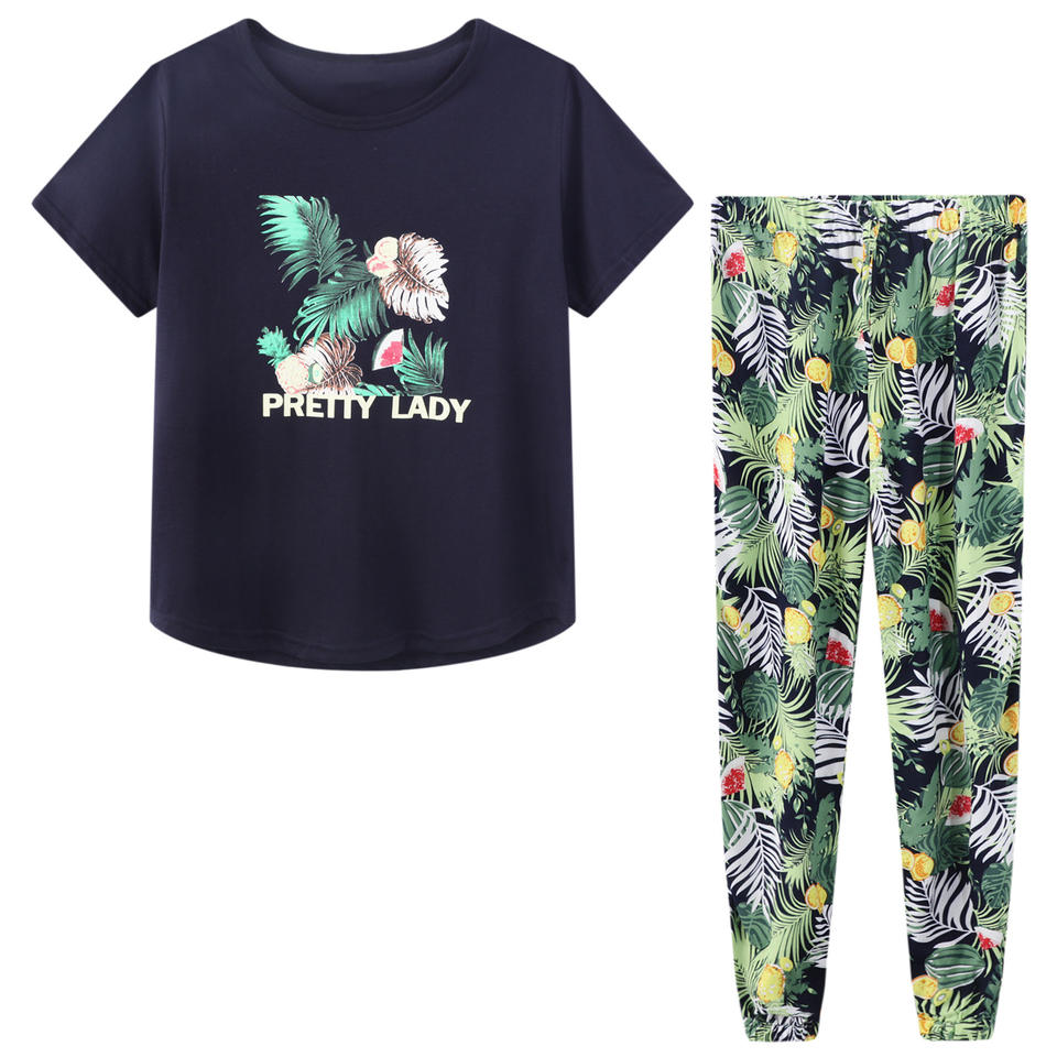 Wholesale Women Short Sleeve /Long Pants Casual Cotton Pajamas