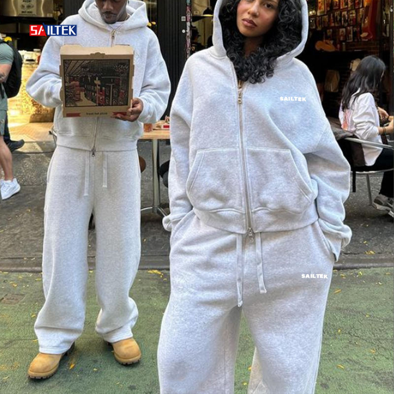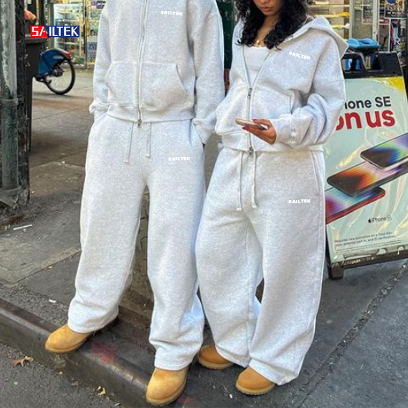 Wholesale Women's Clothing Elegant 2025 Custom logo Tracksuit Fleece Two Piece Wide Leg Sweatpants and Zip up Hoodie Set
