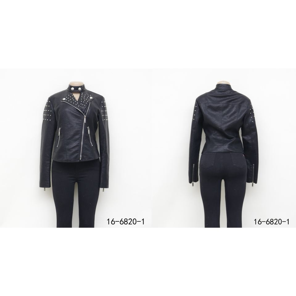 Wholesale Women's Quilted Black Sheep Skin and PU Leather Studded Jacket with Zippers Hooded Collar for Autumn Spring Seasons
