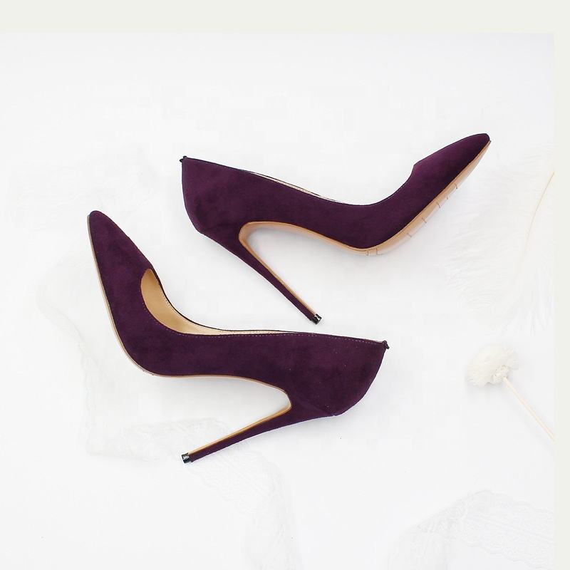 Wholesale Women's Summer Purple & Yellow Suede Stiletto High Heel Pumps Breathable Slip-On Closure Thin Heels for Weddings