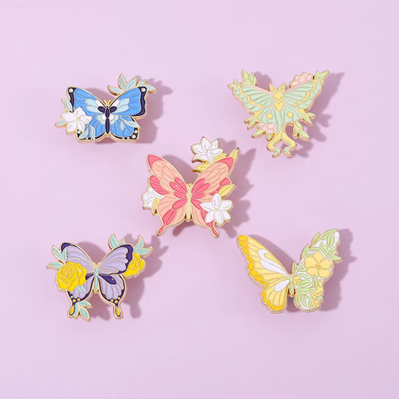 Wholesale YIZHE Cute Japanese Metal Badge Pin Creative Butterfly Insect Cartoon Brooch Animal Theme Wedding Decor Gifts Casted