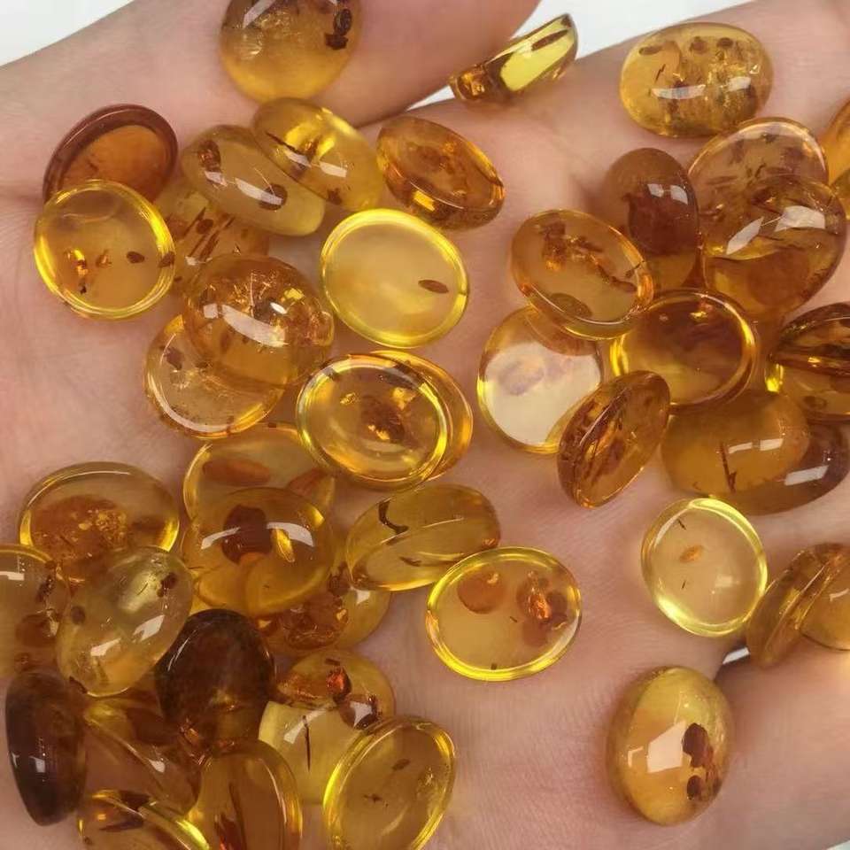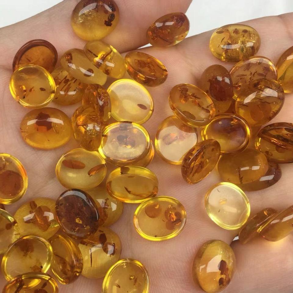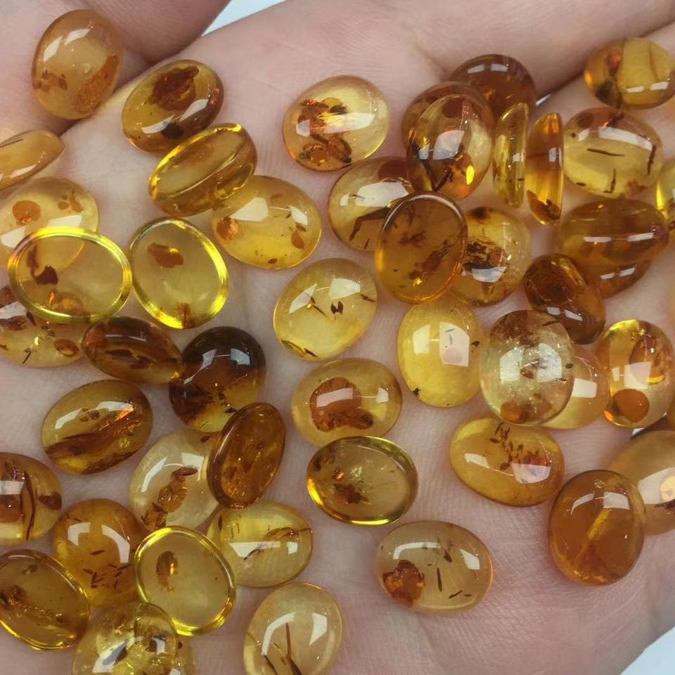 Wholesale Yellow Natural Flower Amber Oval Flat-Bottom Cabochons Smooth Surface Semi-Finished Loose Stones for Jewelry Making
