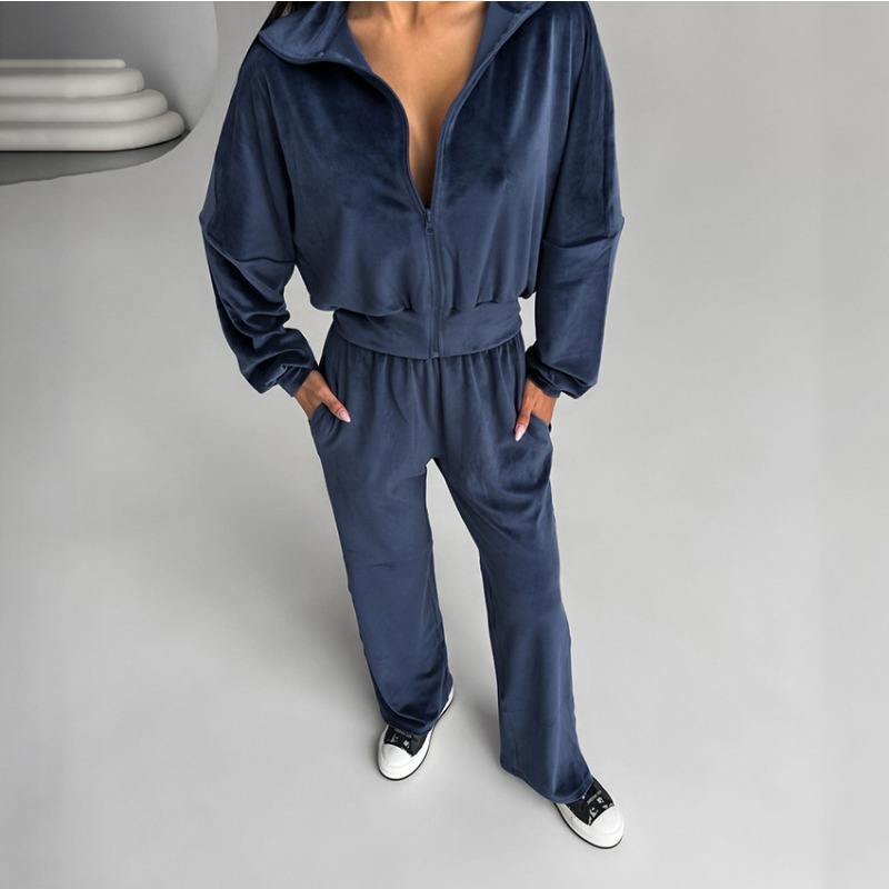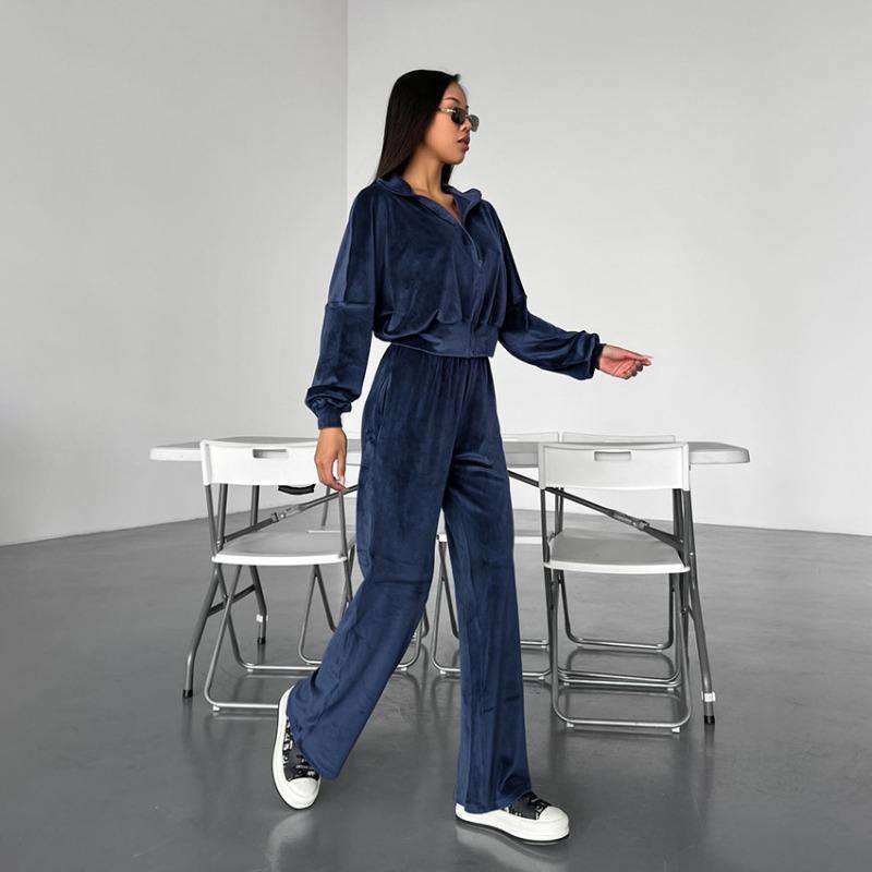 Wholesale autumn 2026 new fashion elegant temperament casual sports navy blue stand-up collar long-sleeved trousers women's suit