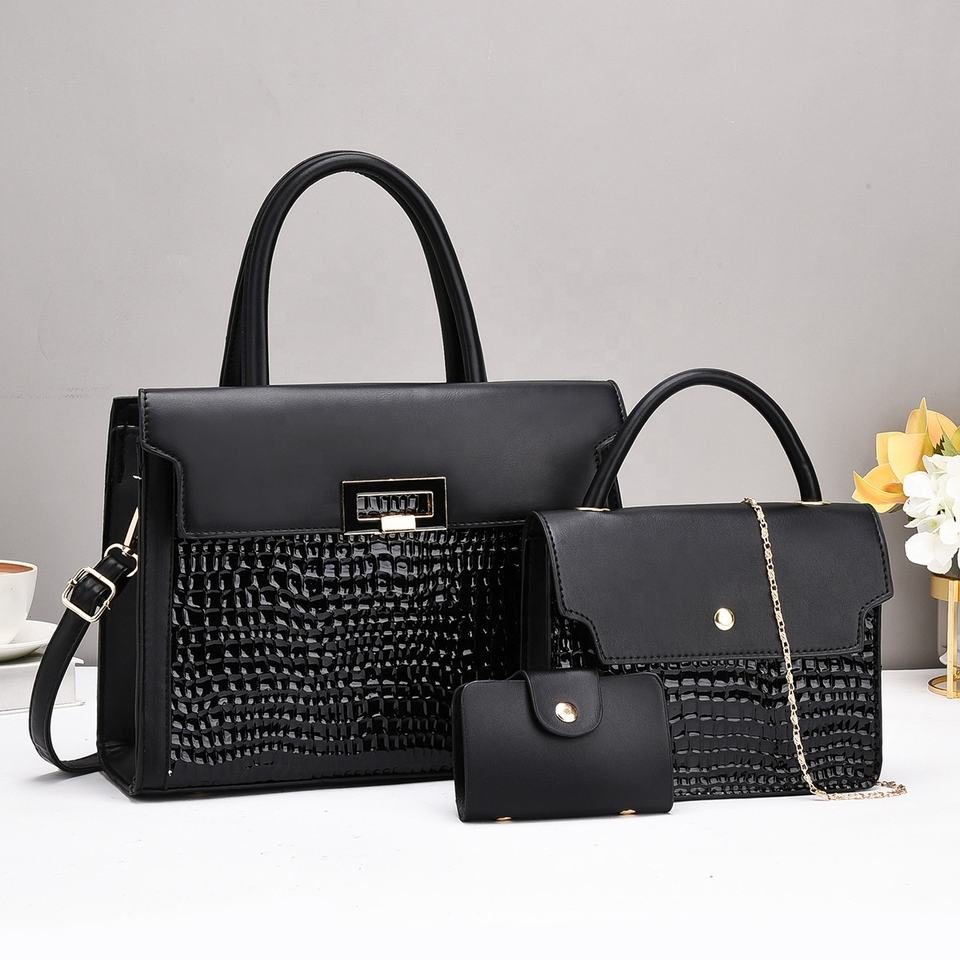Set di 3 Borse in Pelle di Coccodrillo all'Ingrosso, Borsa a Tracolla Rosa con Pochette per Donna