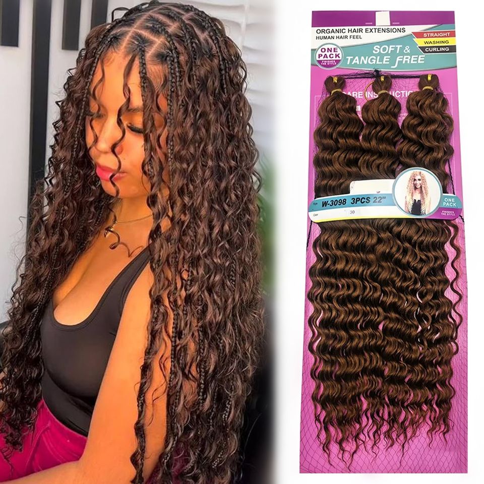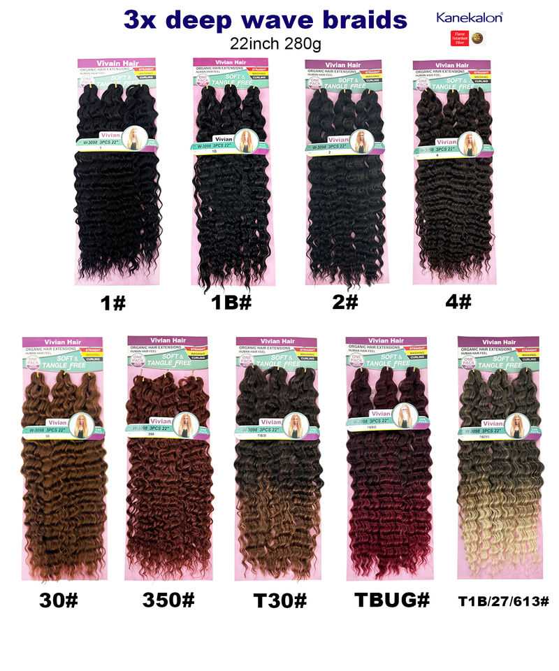 Ingrosso su misura 22 pollici 3x trecce a onda profonda lunga riccia treccia uncinetto capelli extension kanekalons sintetici per le donne