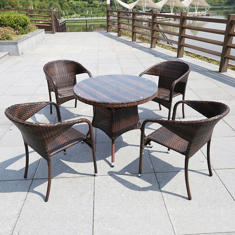 Commercio all'ingrosso in magazzino scontato in vimini rattan ristorante esterno tavolo da pranzo e sedia PE rattan set di mobili da caffè
