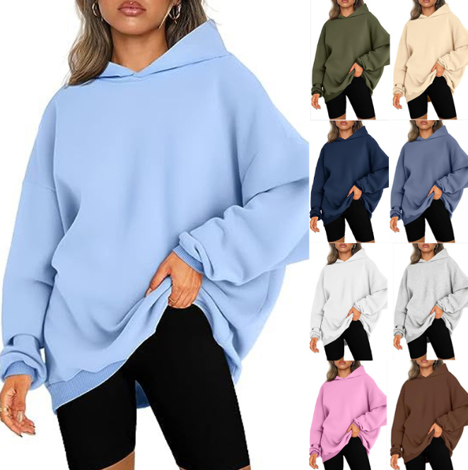 Commercio all'ingrosso di maglioni di colore solido di grandi dimensioni per le donne in autunno e in inverno nuove giacche lunghe con cappuccio allentate e top da donna