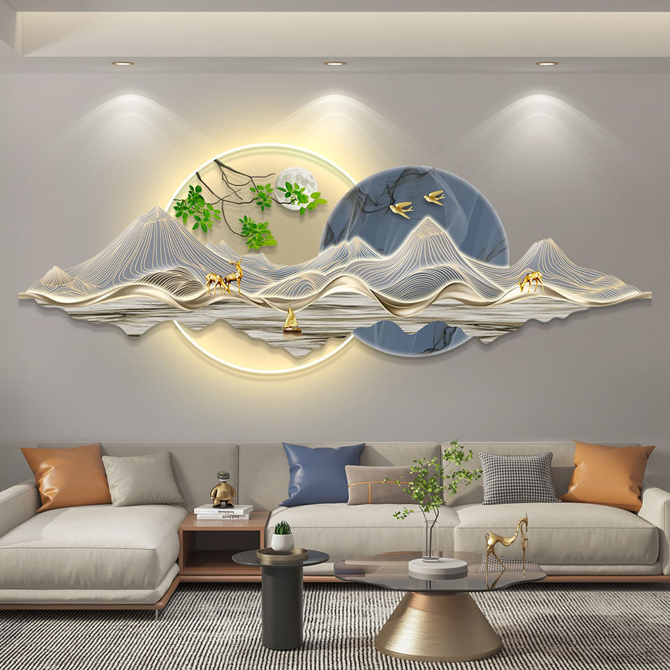 Wholesale of Modern Luxury Landscape LED Paintings Acrylic Gold Wall Art and Home Decoration Paintings for Living Room