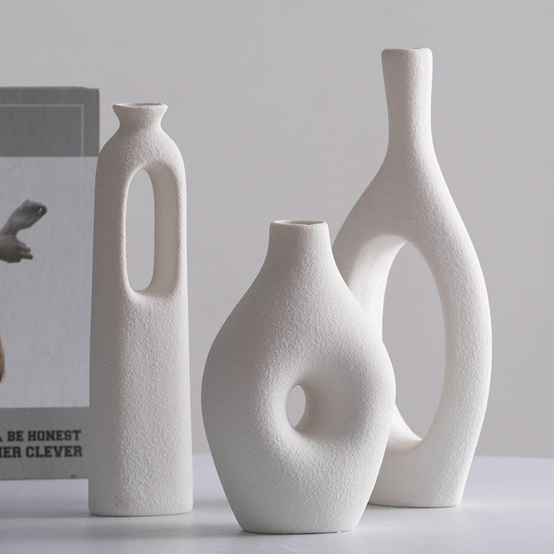 Wholesale of Nordic Decorative Farmhouses Size Circular Hollow White Black Modern Ceramic Vases Circular Vases Customized