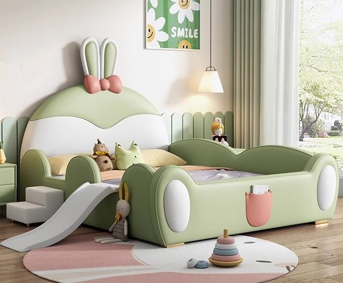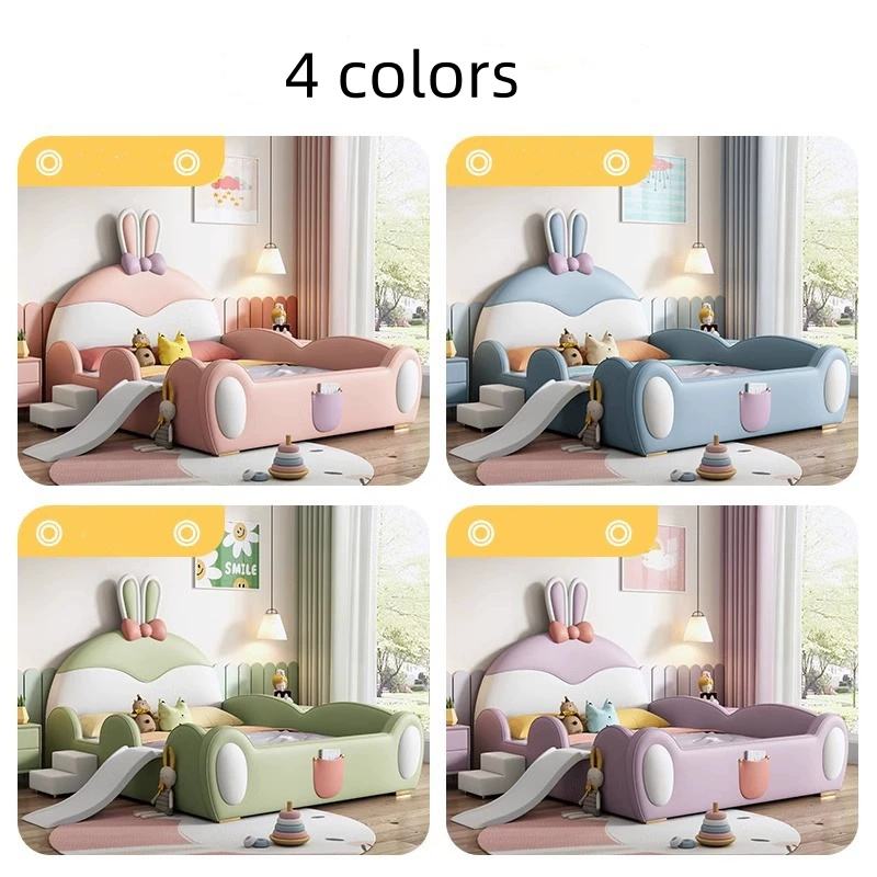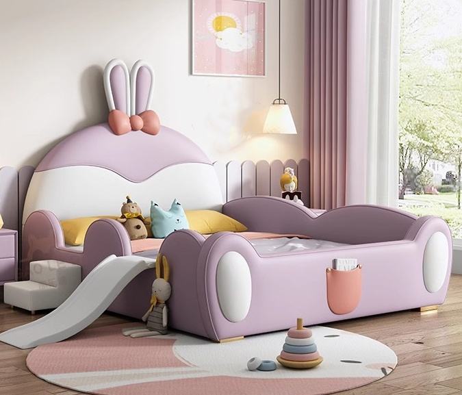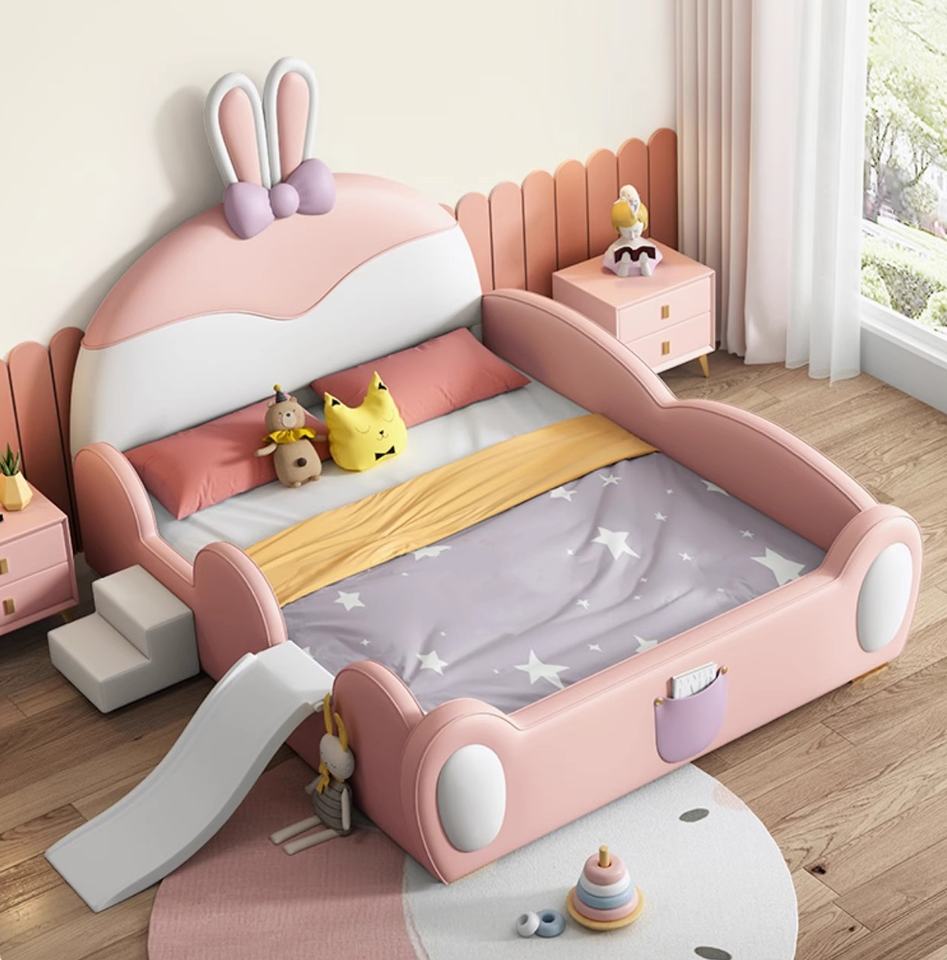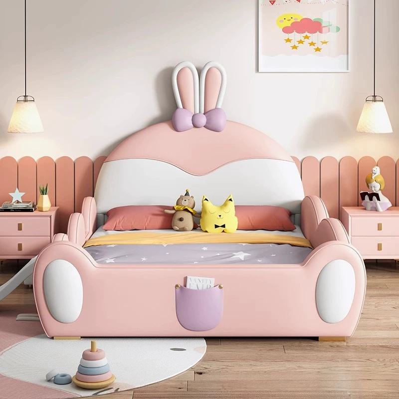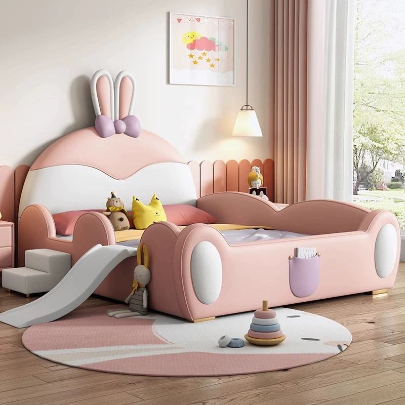 Wholesaler Children Parapet Beds Kid New Bunny Design Bed Boy Cute Double Kids Pink Bed With Stairs Slide Bedroom Furniture Set
