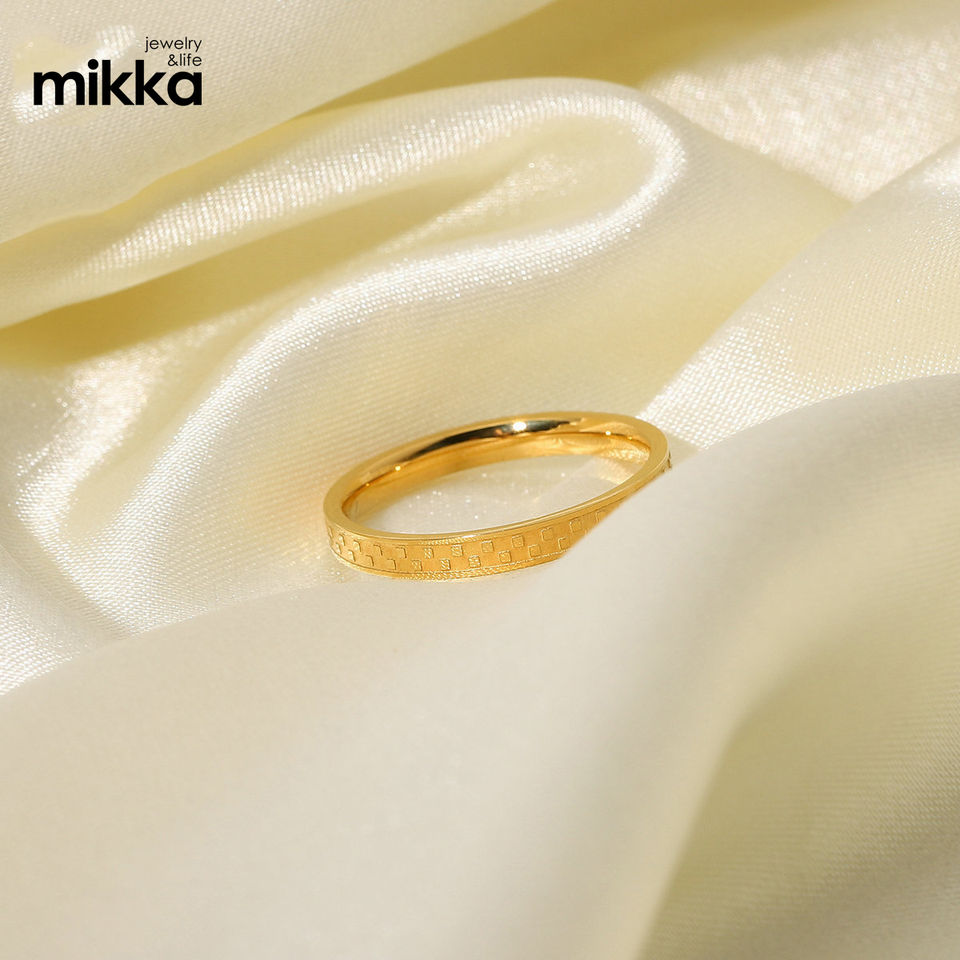Wholesales 18K Gold Plated Stainless Steel Checkerboard Women Ring Jewelry Gift