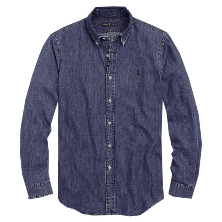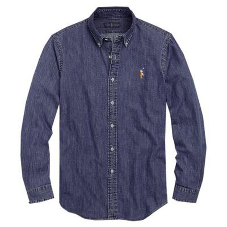 Nanjing Lemon International Camicia denim uomo lavata manica lunga S-2XL azzurro/nero anti-piega, bottoni coperti, 3 pz