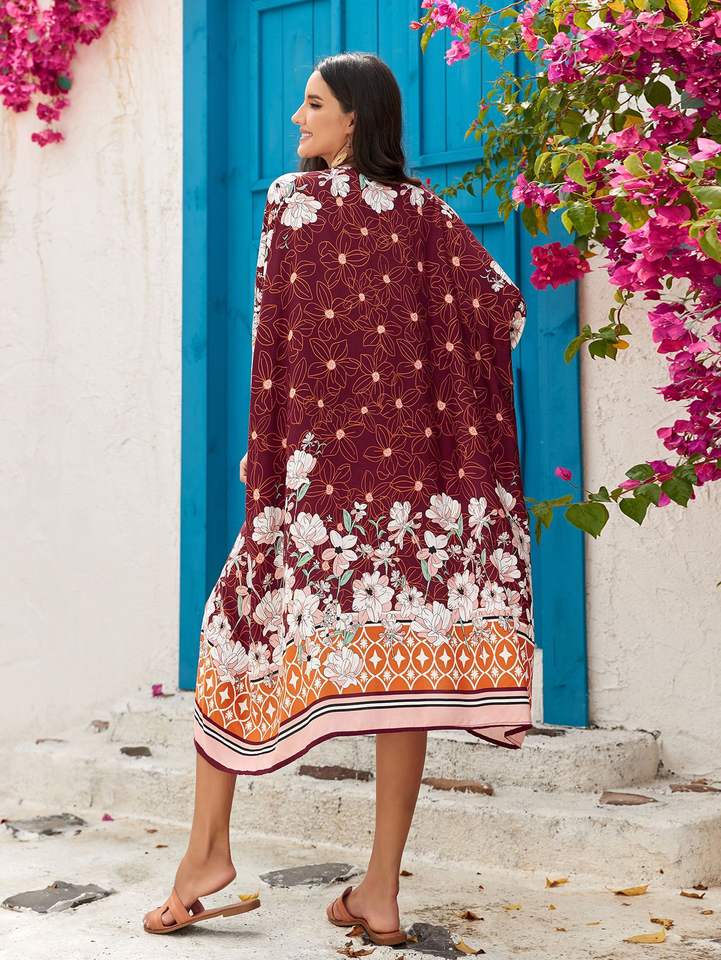 Whosale 2024 Swimwear Beachwear Luxury Custom Viscose Printed Beach Cardigans Sexy Long Women Kimono With Belt