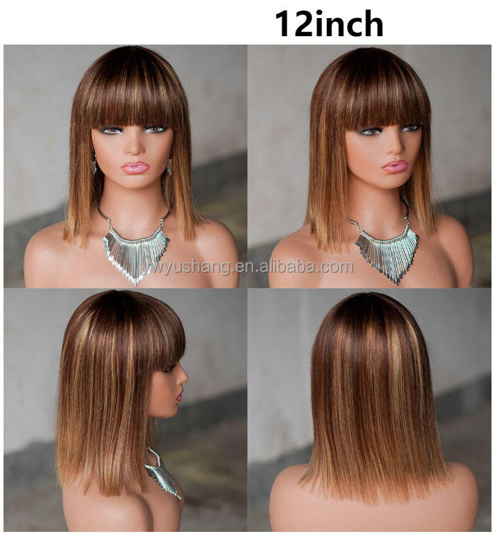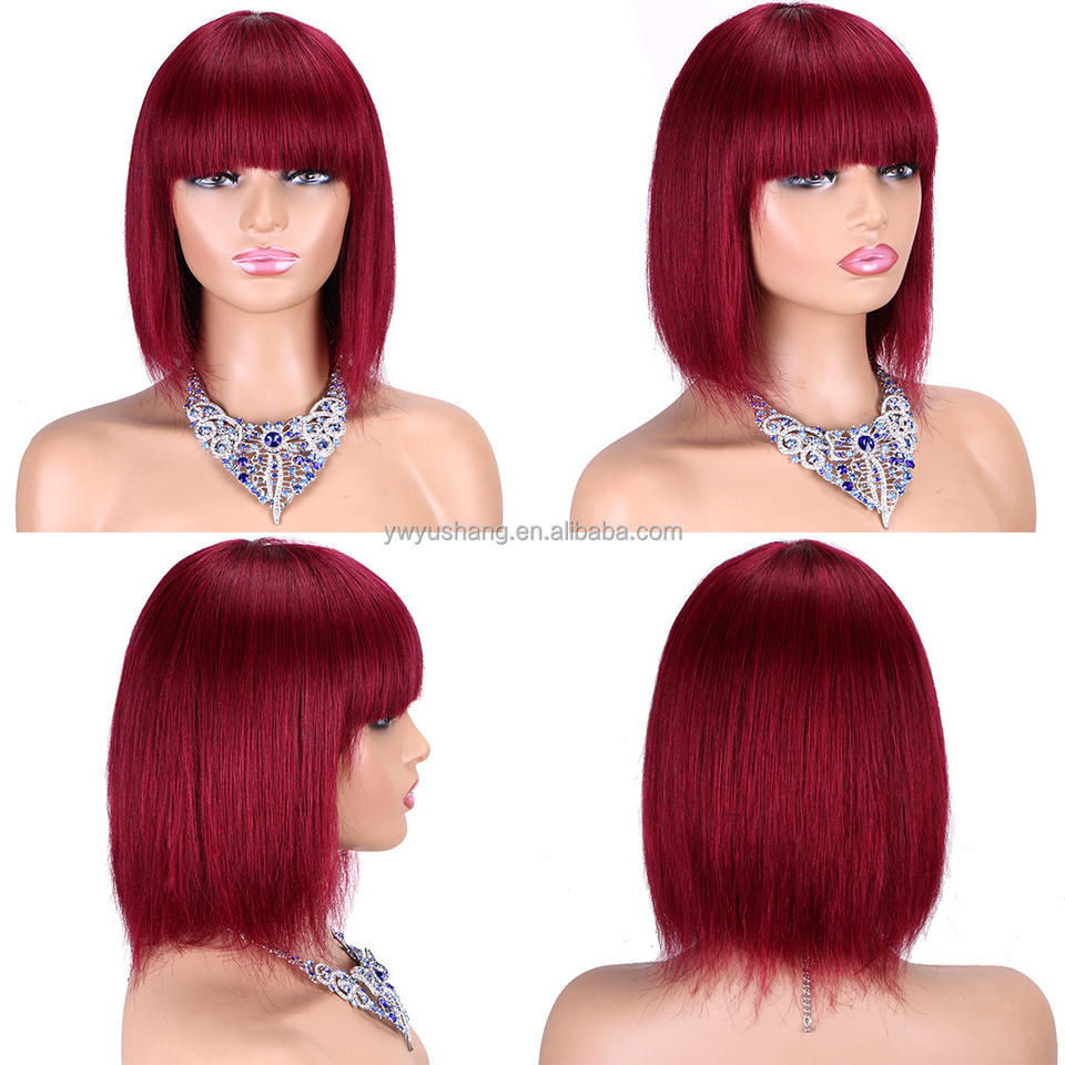 Whosale 8 10 12 14 pollici Bob dritto senza colla capelli umani parrucche vero naturale nero a buon mercato Short frangs parrucca cinese per le donne