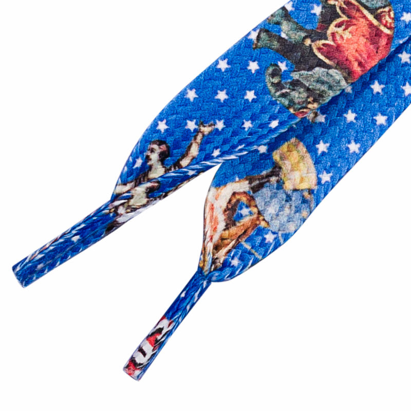 Wide 8mm Premium Casual Sport Flat Polyester Laces with Custom Circus Print Metal Material for Footwear and Creative Fashion