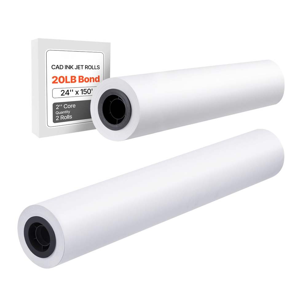 Rotoli di carta per plotter CAD a nucleo doppio da 24 pollici x 150 piedi, 20 libbre, 20 rotoli, con 2 rotoli CAD a nucleo doppio