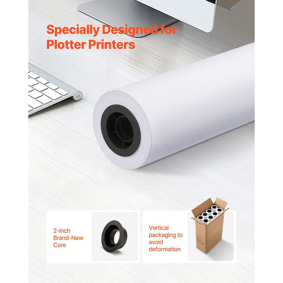 Rotolo di Carta per Plotter Formato Largo 24 pollici x 150 piedi, 8 Rotoli CAD Bond con Anima da 2 pollici, Rotoli Master da 20 LB per CAD
