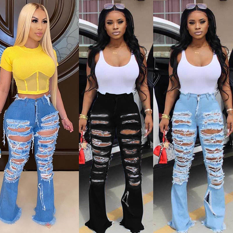 Jeans a Zampa d'Elefante Strappati a Vita Alta, Stile Svasato e Dritto, Vestibilità Ampia, Design Casual Y2K con Stampa, Taglia XL