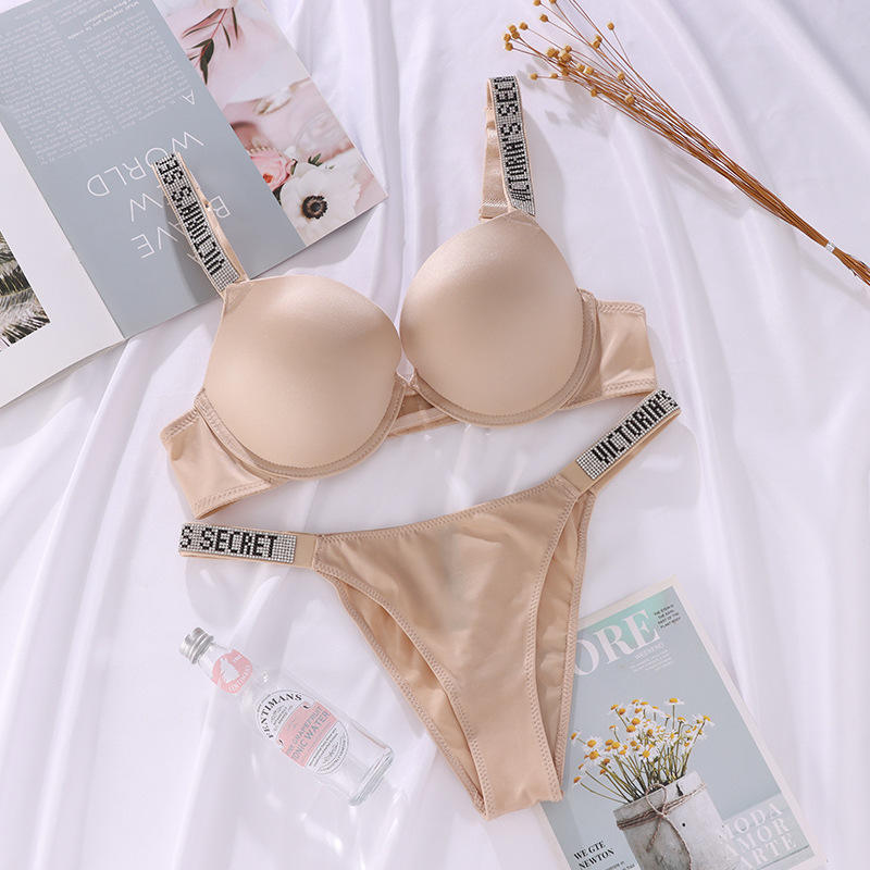 Reggiseno con Spalline Larghe e Coppe a 3/4 Push-Up, Set con Perizoma in Nylon, Stile Lusso Leggero Europeo Americano, Taglie Forti