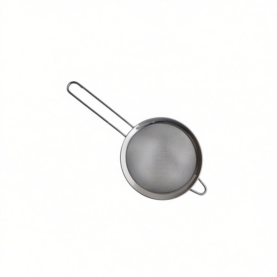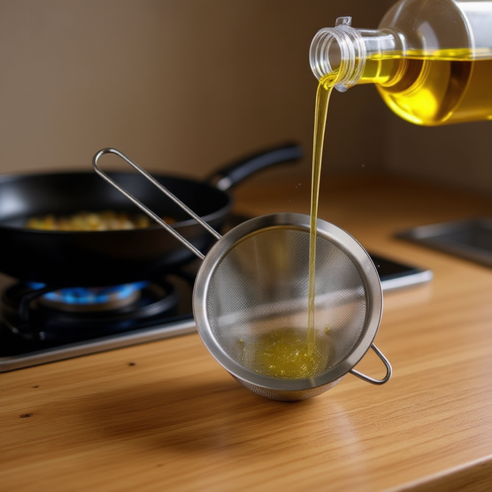 Colino a doppio strato in metallo con bordo largo per filtrare l'olio, 20 cm, con manico in acciaio inossidabile