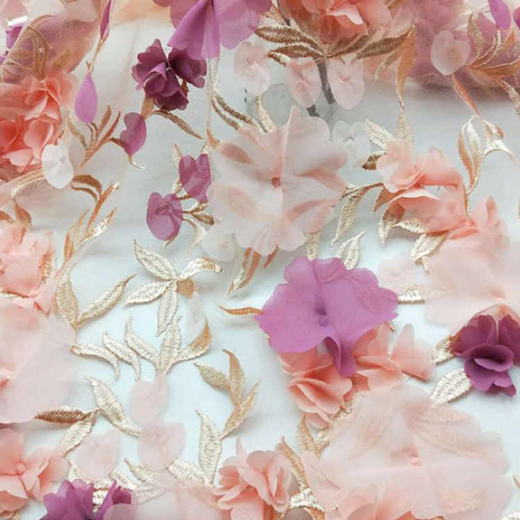 Sanqiang Tessuto tulle pizzo mesh ricamato 3D poliestere 120gsm 60S×60S larghezza 130-150 cm per abbigliamento donna, traspirante