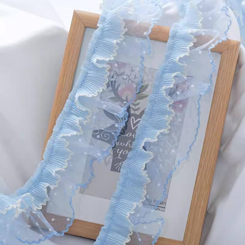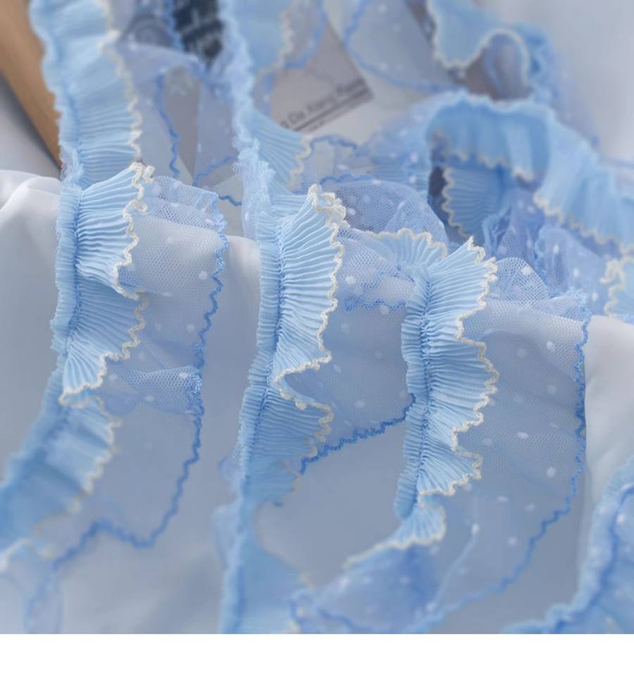 Larghezza 6 cm in poliestere blu cielo Tulle con rifiniture in pizzo a pois nastro di pizzo per bambini