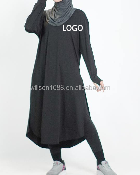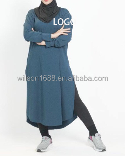 Abbigliamento Sportivo Willson a Maniche Lunghe con Spacchi Laterali per Donne Musulmane, Tunica da Allenamento Modesta e alla Moda