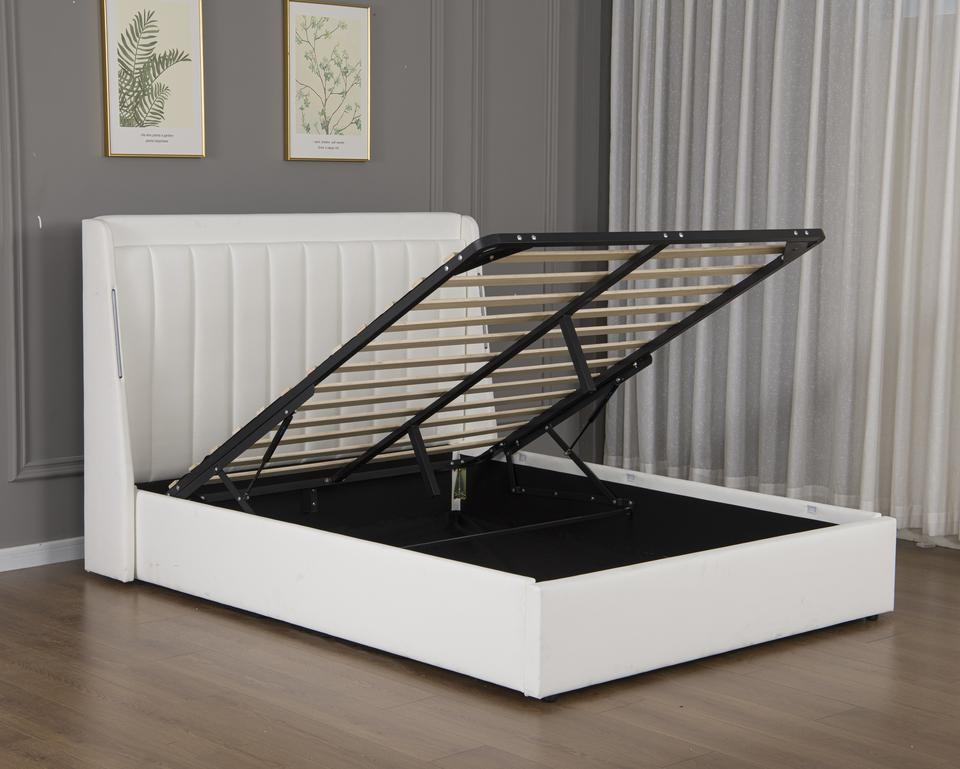 Willsoon Modern Soft Bed with Upholstered Storage LED Light Headboard Hydraulic Lift Platform for Bedroom