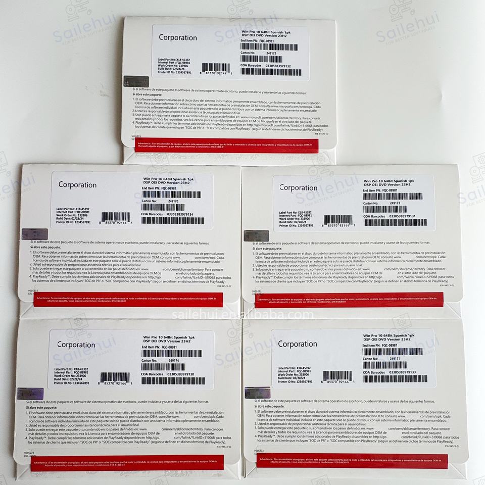 Windows 10 Professional Versione Spagnola, Licenza OEM 64bit con DVD, Chiave e Adesivo COA, Attivazione Online Globale Personalizzabile