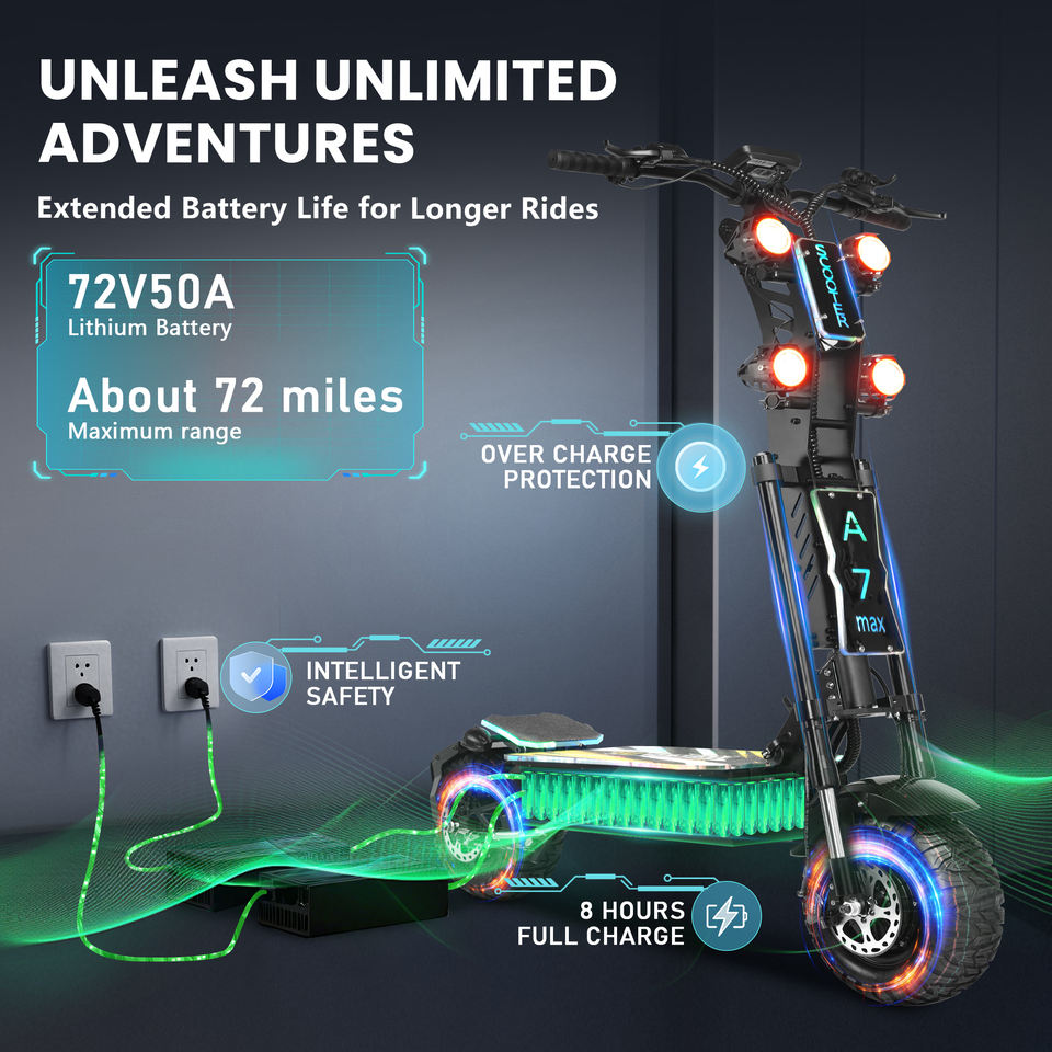 Monopattino Elettrico Pieghevole Win Rider 72V 50AH con Doppio Motore, Pneumatici Larghi per Fuoristrada, Batteria 40Ah, Velocità 85-100km/h (65MPH), Disponibile negli USA
