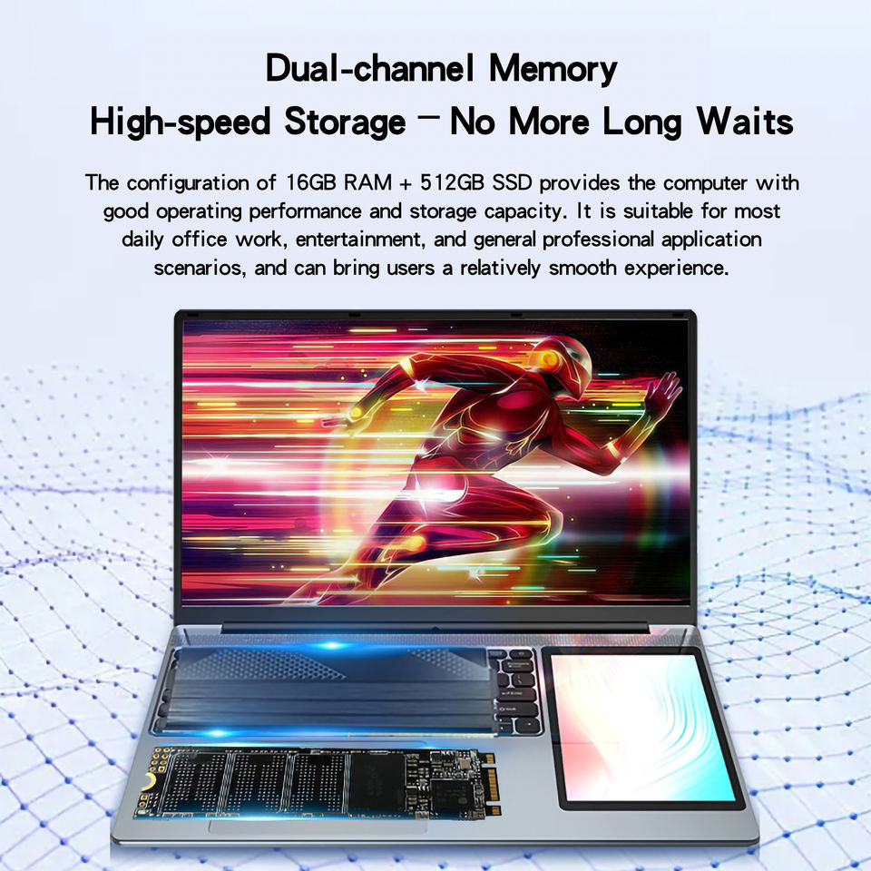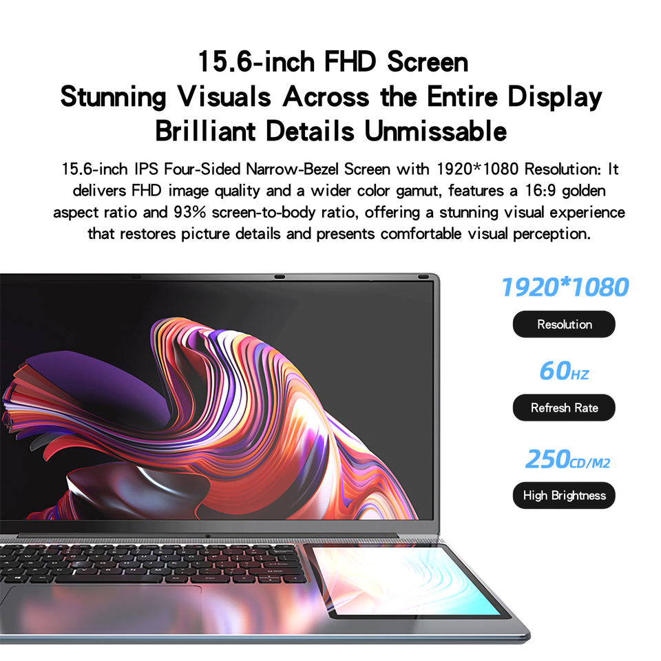 Laptop Personale Premium 2in1 con Win11, Display Touch Doppio da 15.6 Pollici, Processore N100, Sottile e Leggero, per Studio Quotidiano e Uso in Ufficio