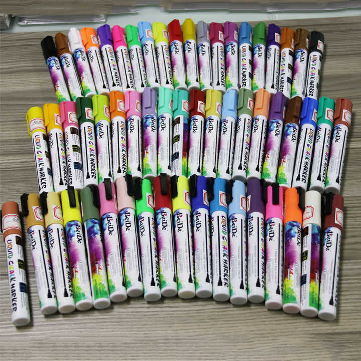 58 Colors 6mm Reversible Tip Erasable Fluorescent Liquid Chalk Marker For Chalkboard, Glass, Plastic, Ceramics, Windows
